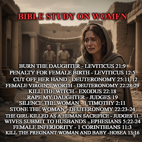 Just by these verses listed here, it’s clear that the authors felt that women were inferior and deserved inferior treatment. It could not be more clear. Use your brain and see the reality and let it sink in.